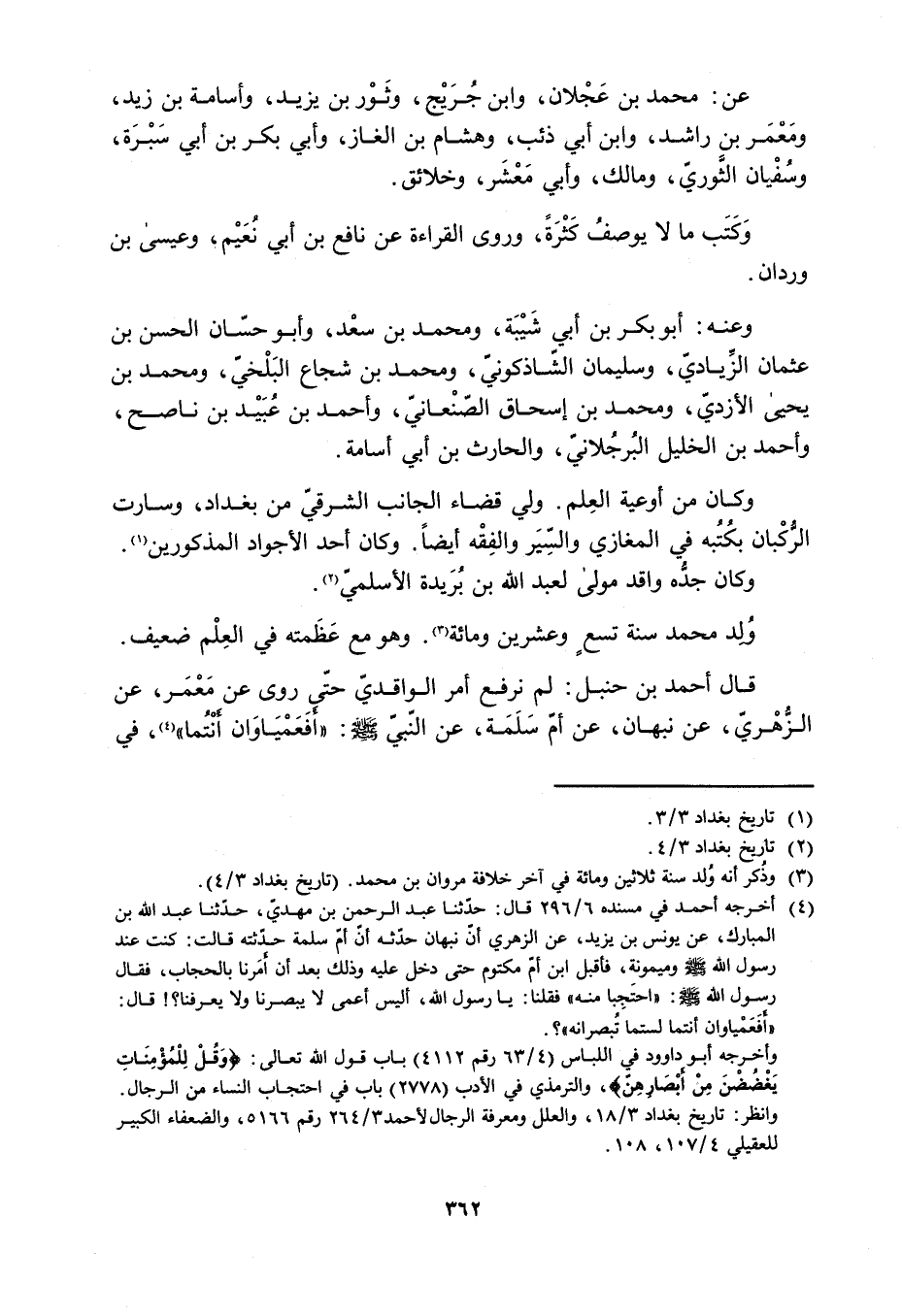 وانظر: تاريخ بغداد 3/ 18، والعلل ومعرفة الرجال لأحمد 3/ 264 رقم 5166، والضعفاء الكبير للعقيليّ 4/ 107، 108.