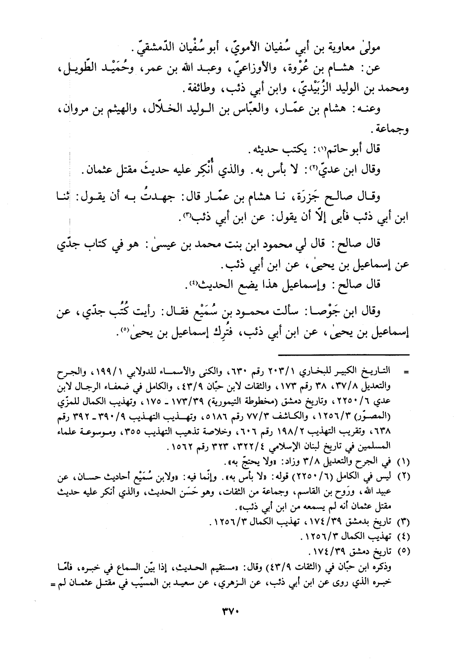 [ () ] التاريخ الكبير للبخاريّ 1/ 203 رقم 630، والكنى والأسماء للدولابي 1/ 199، والجرح والتعديل 8/ 37، 38 رقم 173، والثقات لابن حبّان 9/ 43، والكامل في ضعفاء الرجال لابن عدي 6/ 2250، وتاريخ دمشق (مخطوطة التيمورية) 39/ 173- 175، وتهذيب الكمال للمزّي (المصوّر) 3/ 1256، والكاشف 3/ 77 رقم 5186، وتهذيب التهذيب 9/ 390- 392 رقم 638، وتقريب التهذيب 2/ 198 رقم 606، وخلاصة تذهيب التهذيب 355، وموسوعة علماء المسلمين في تاريخ لبنان الإسلامي 4/ 322، 323 رقم 1562.