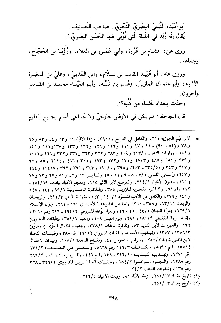 [1] تاريخ بغداد 13/ 252، نزهة الألبّاء 85، وفيات الأعيان 5/ 242.