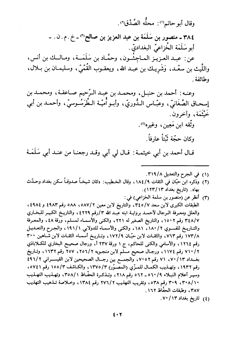 384- منصور بْن سلمة بن عبد العزيز بن صالح [3]- خ. م. ن. - أبو سلمة الخزاعيّ البغداديّ.