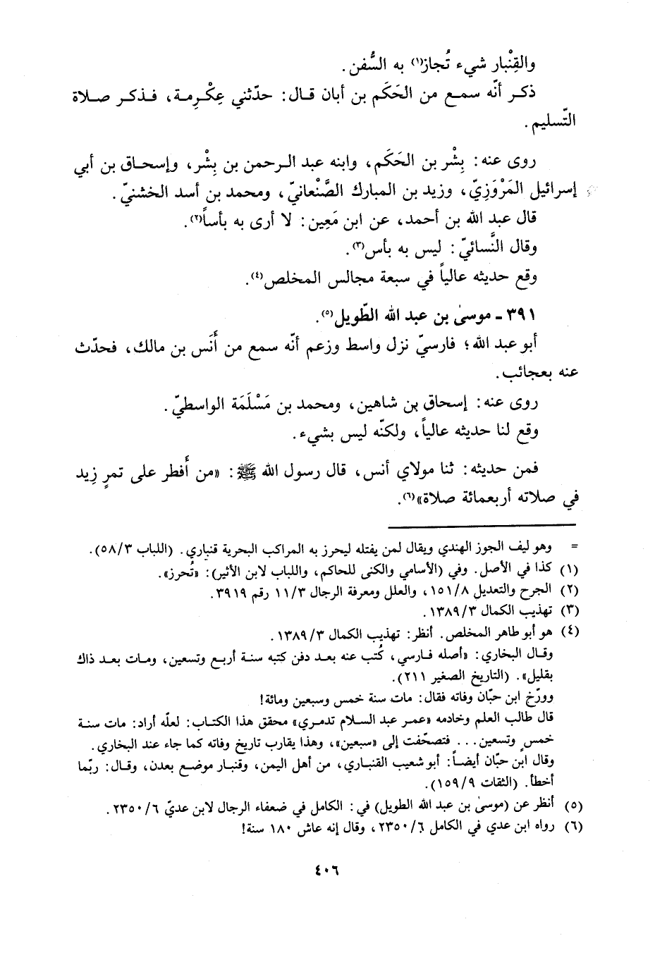 [5] انظر عن (موسى بن عبد الله الطويل) في: الكامل في ضعفاء الرجال لابن عديّ 6/ 2350.