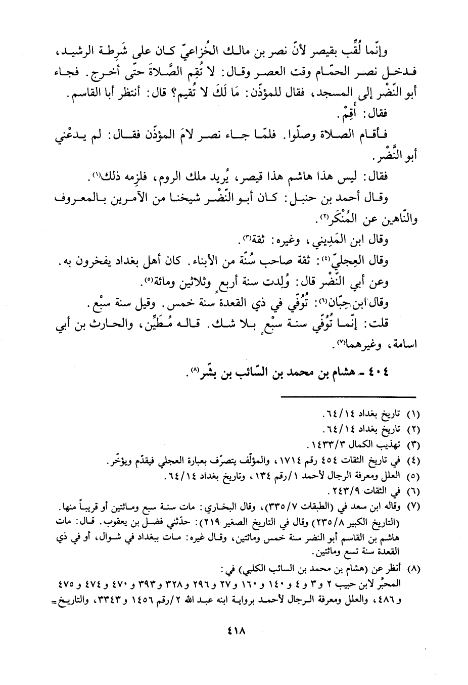 404- هشام بْن محمد بْن السائب بْن بشّر [8] .
