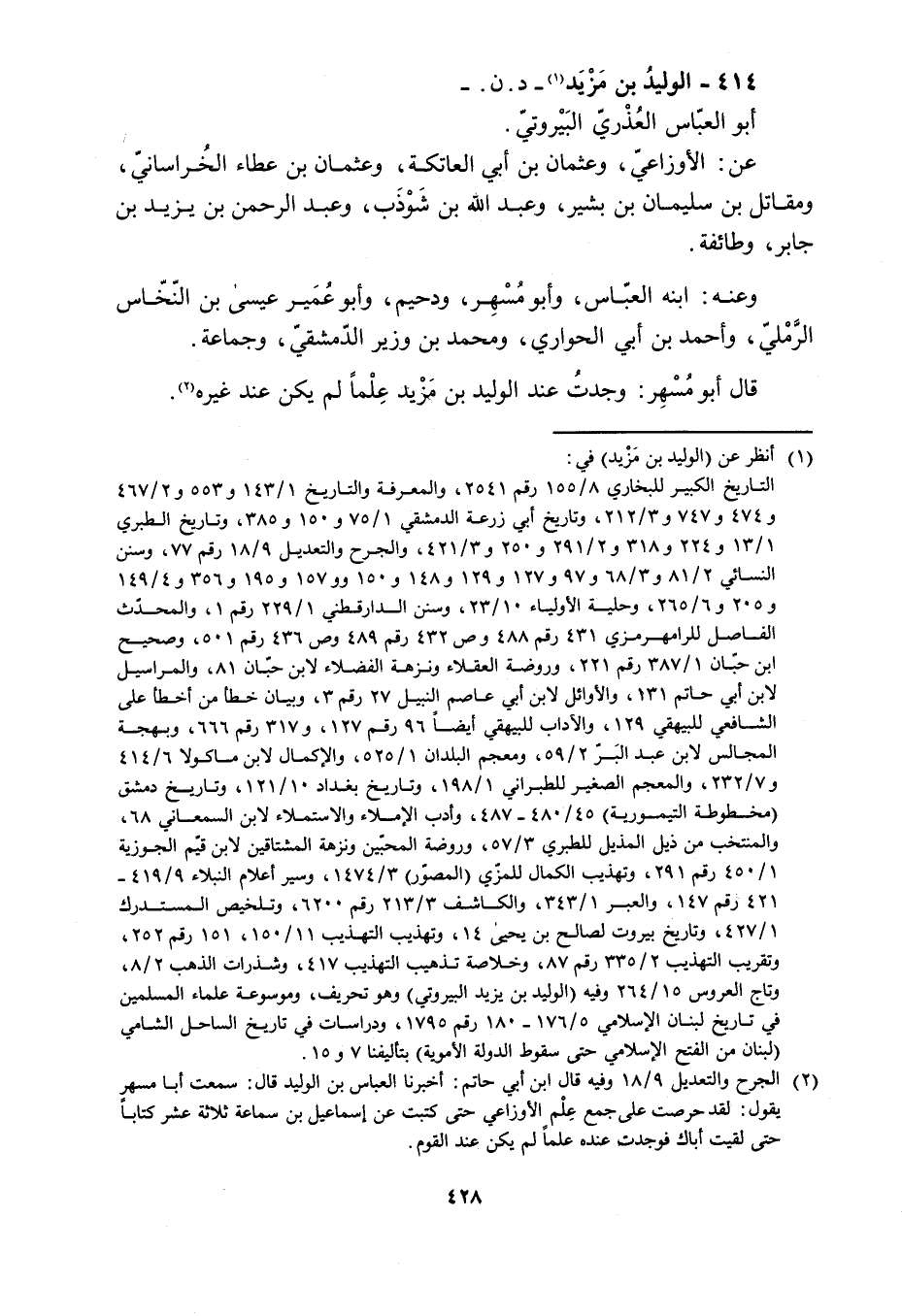 414- الوليد بن مزيد [1]- د. ن. - أبو العبّاس العذريّ البيروتيّ.