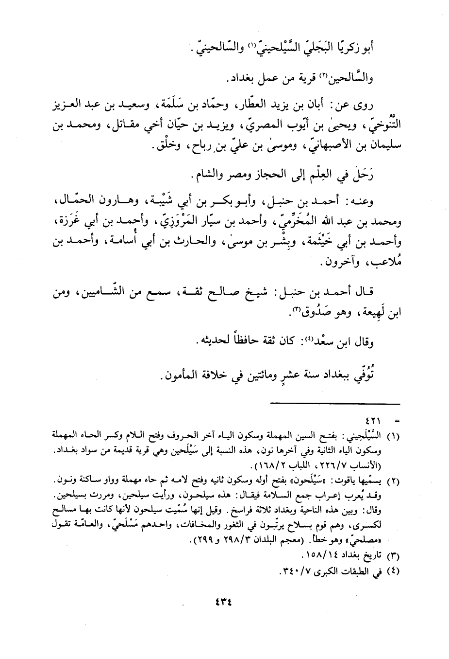 [1] السيلحيني: بفتح السين المهملة وسكون الياء آخر الحروف وفتح اللام وكسر الحاء المهملة وسكون الياء الثانية وفي آخرها نون، وهذه النسبة إلى سيلحين وهي قرية قديمة من سواد بغداد.