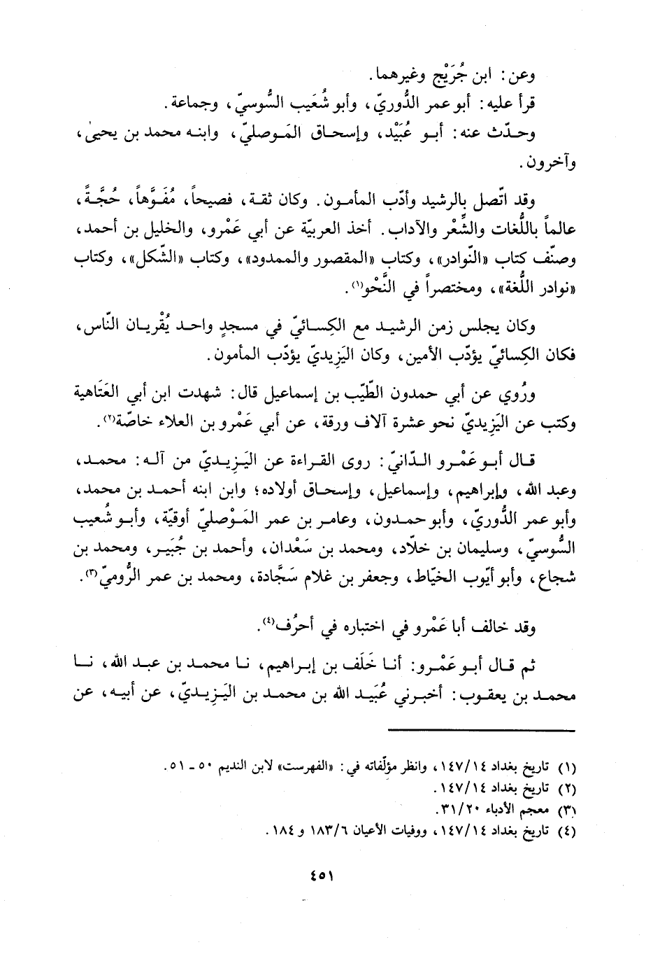 [4] تاريخ بغداد 14/ 147، ووفيات الأعيان 6/ 183 و 184.