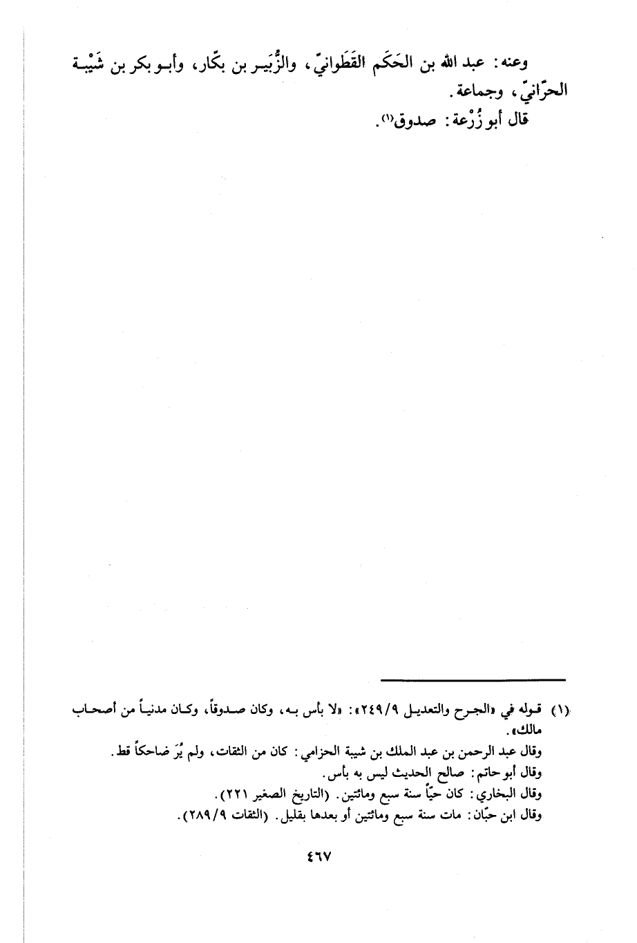 [1] قوله في «الجرح والتعديل 9/ 249» : «لا بأس به، وكان صدوقا، وكان مدنيا من أصحاب مالك» .
