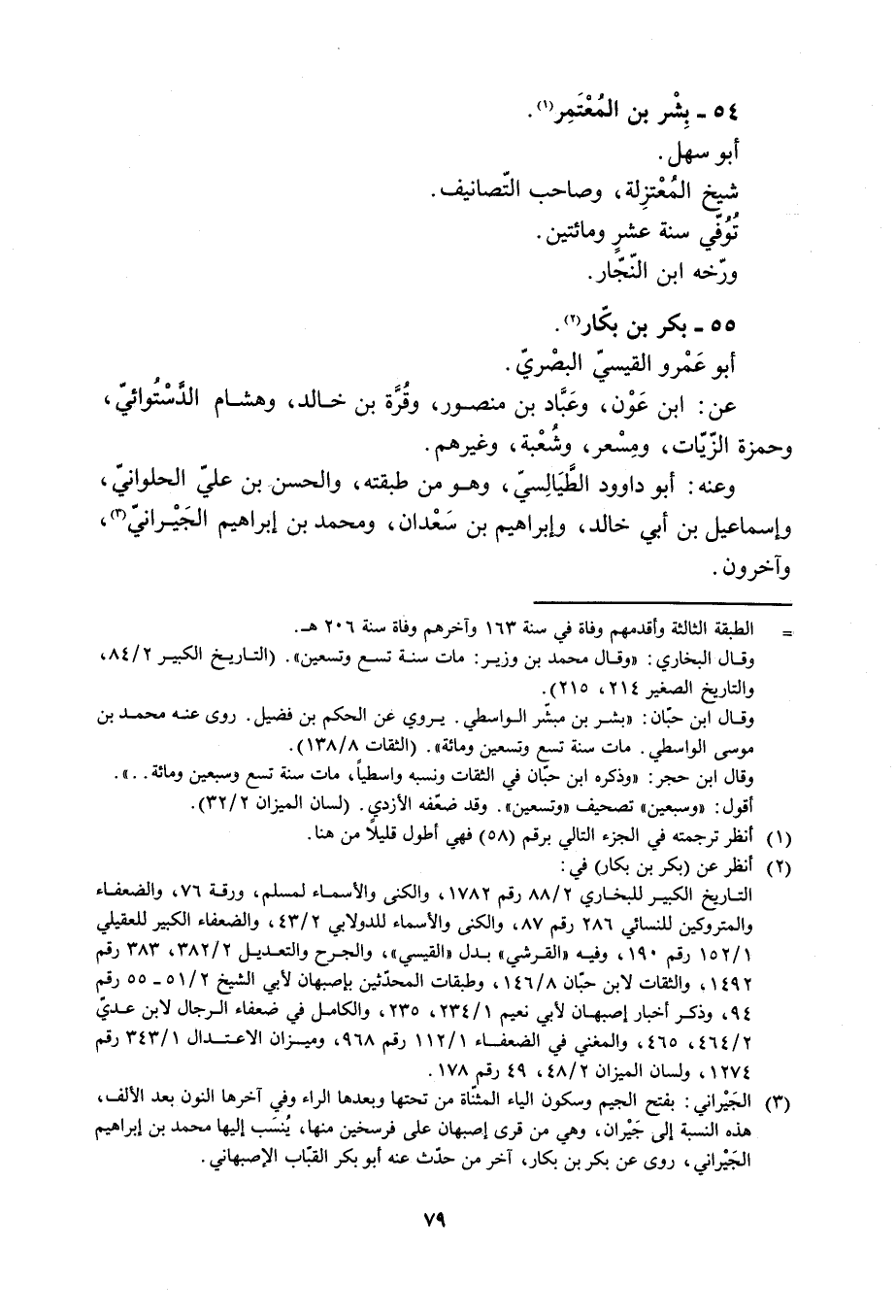 [ () ] الطبقة الثالثة وأقدمهم وفاة في سنة 163 وآخرهم وفاة سنة 206 هـ.