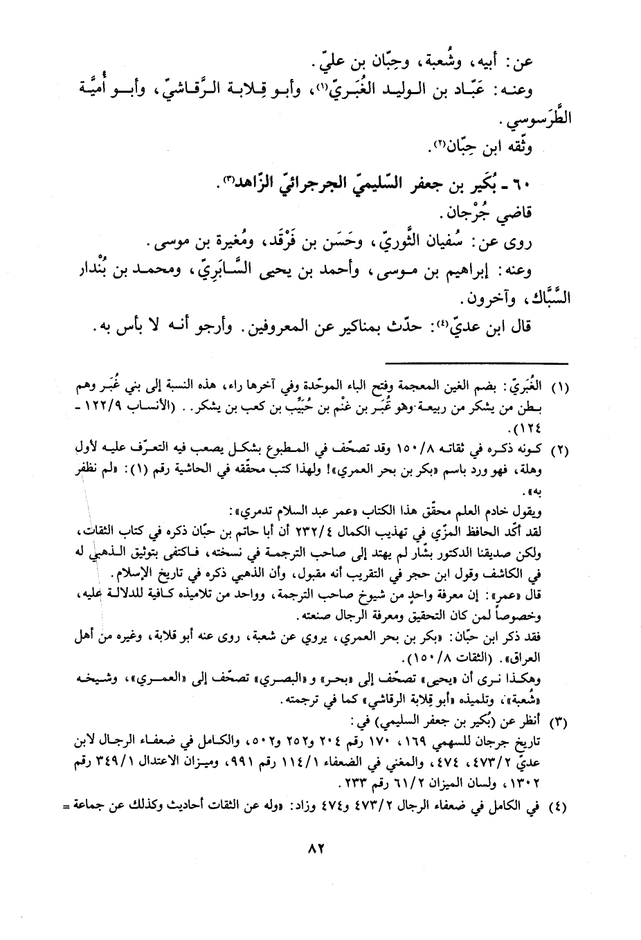 [2] كونه ذكره في ثقاته 8/ 150 وقد تصحّف في المطبوع بشكل يصعب فيه التعرّف عليه لأول وهلة، فهو ورد باسم «بكر بن بحر العمري» ! ولهذا كتب محقّقه في الحاشية رقم (1) : «لم نظفر به» .