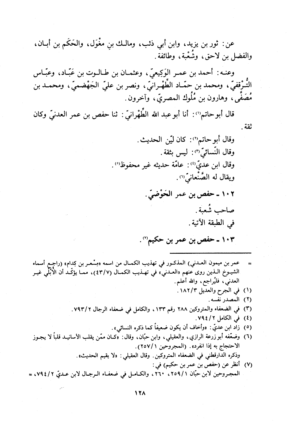 [7] انظر عن (حفص بن عمر بن حكيم) في: