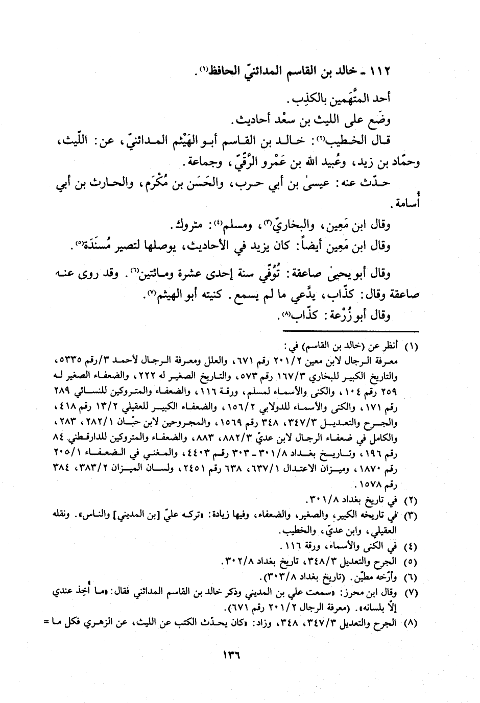 [8] الجرح والتعديل 3/ 347، 348، وزاد: «كان يحدّث الكتب عن الليث، عن الزهري فكل ما