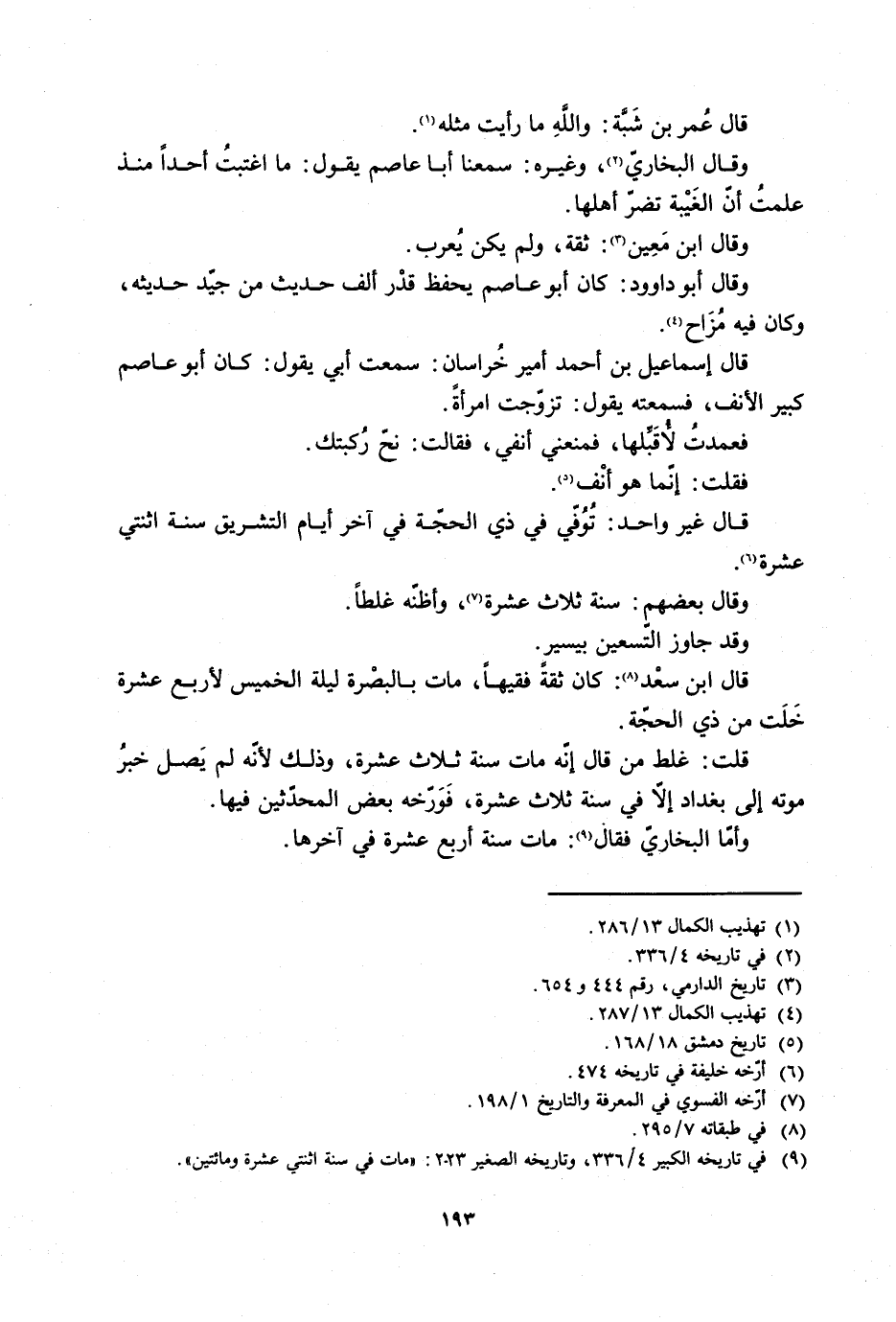 [9] في تاريخه الكبير 4/ 336، وتاريخه الصغير 223: «مات في سنة اثنتي عشرة ومائتين» .