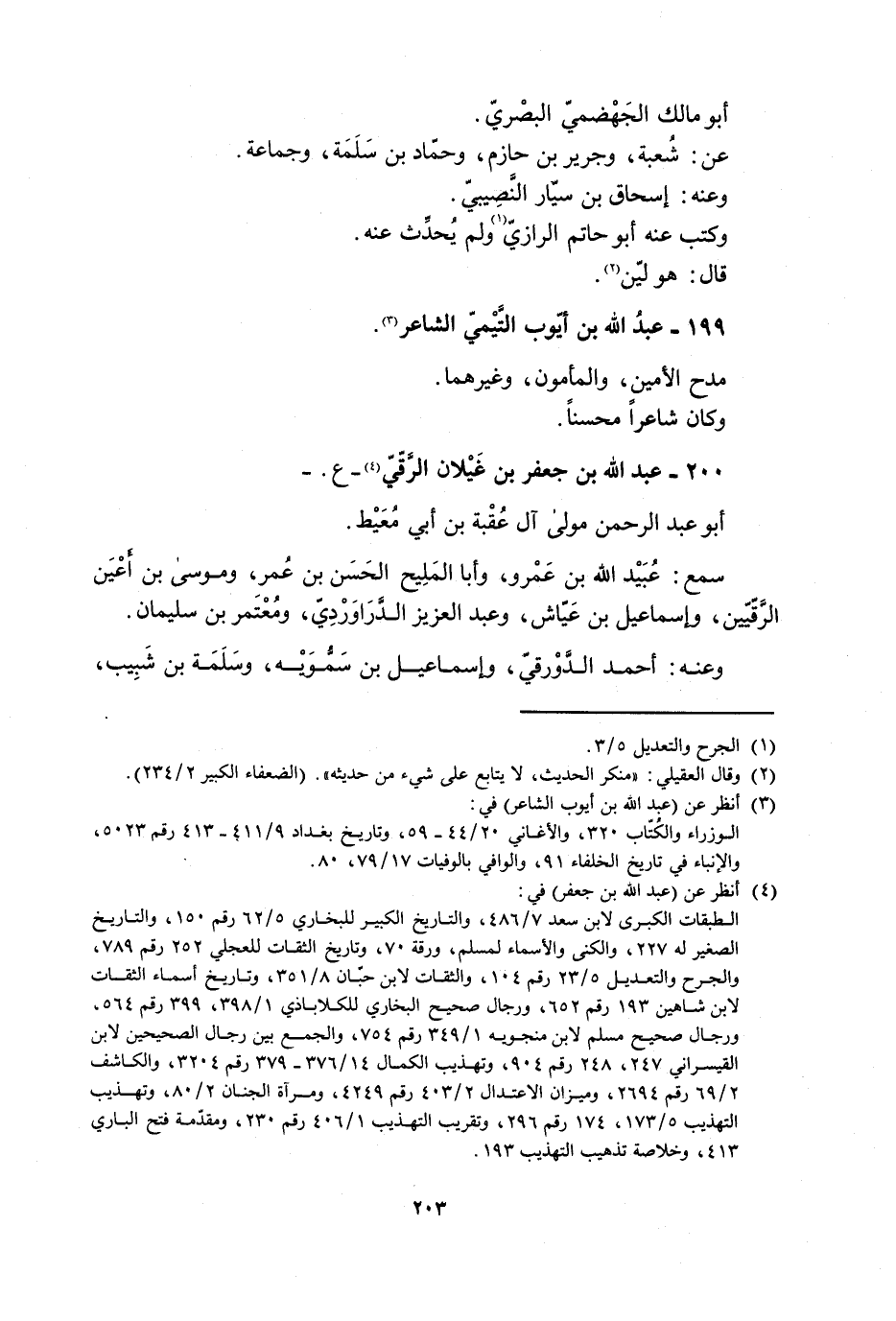 200- عبد الله بن جعفر بن غيلان الرّقّيّ [4]- ع. - أبو عبد الرحمن مولى آل عُقْبة بن أبي مُعَيْط.