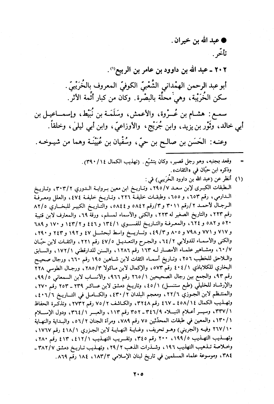[1] انظر عن (عبد الله بن داود الخريبي) في: