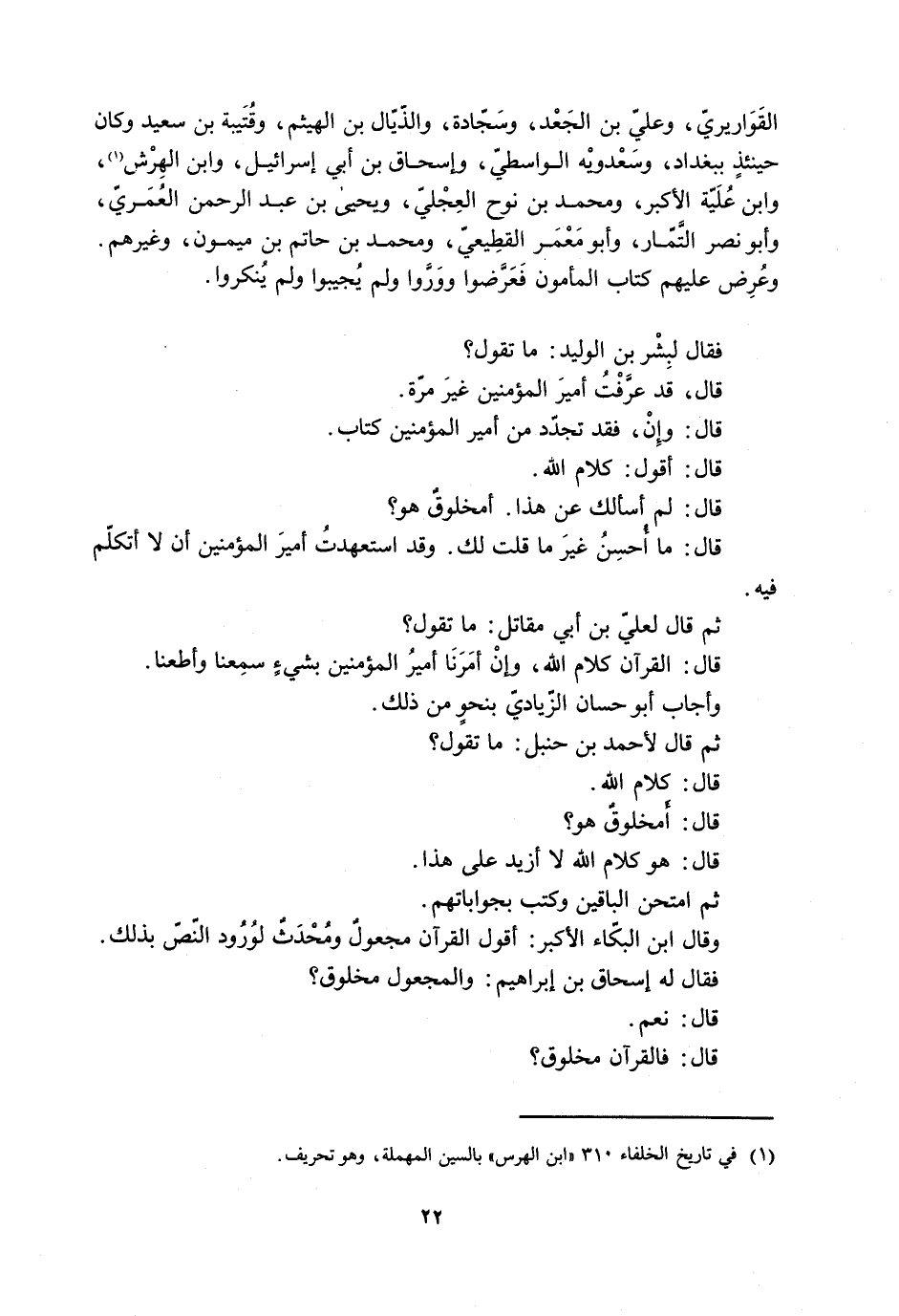 وعُرِض عليهم كتاب المأمون فَعَرَّضوا ووَرَّوْا ولم يُجيبوا ولم يُنكروا.