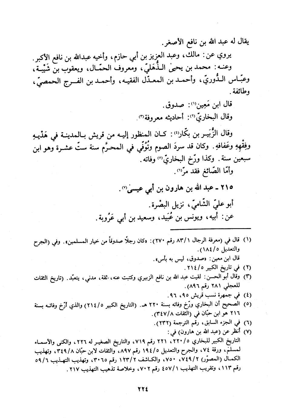 [3] وقال أبو الحسن: لقيت عبد الله بن نافع الزبيري وكتبت عنه، ثقة، مدني، يتعبّد. (تاريخ الثقات للعجلي 281 رقم 896) .