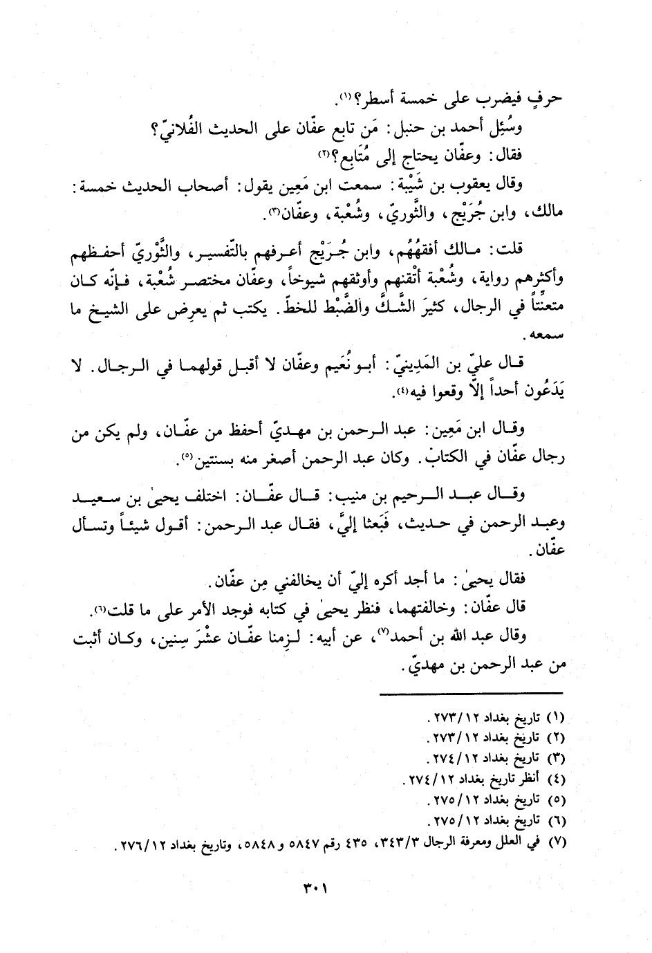 [7] في العلل ومعرفة الرجال 3/ 343، 435 رقم 5847 و 5848، وتاريخ بغداد 12/ 276.