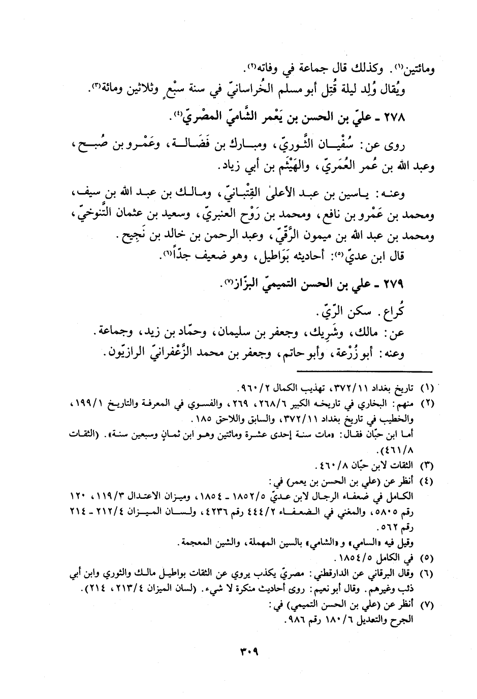 [2] منهم: البخاري في تاريخه الكبير 6/ 268، 269، والفسوي في المعرفة والتاريخ 1/ 199، والخطيب في تاريخ بغداد 11/ 372، والسابق واللاحق 185.