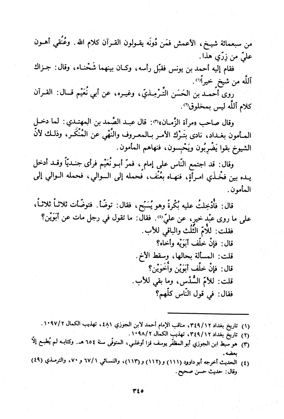 [1] تاريخ بغداد 12/ 349، مناقب الإمام أحمد لابن الجوزي 481، تهذيب الكمال 2/ 1097.