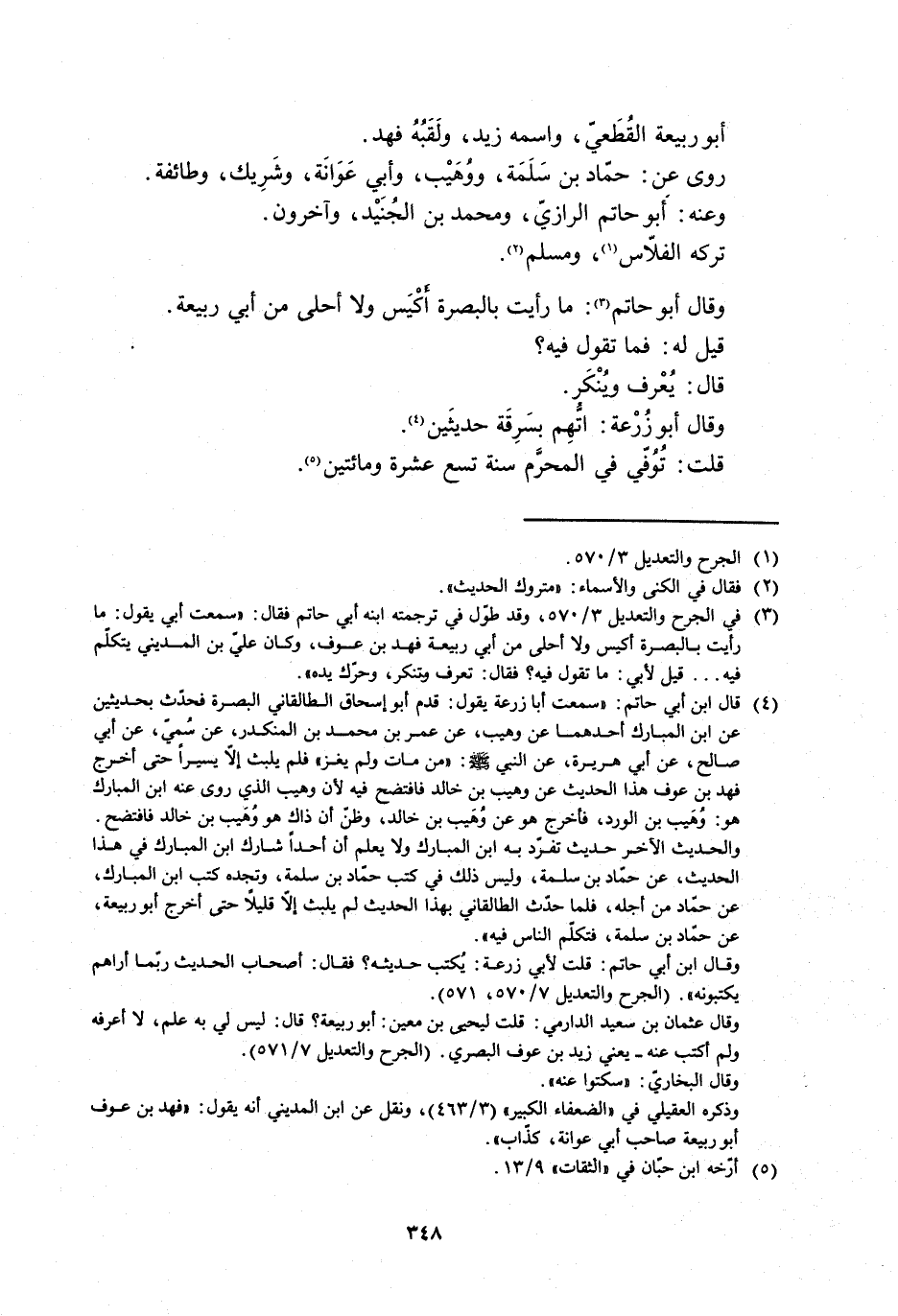 [3] في الجرح والتعديل 3/ 570، وقد طوّل في ترجمته ابنه أبي حاتم فقال: «سمعت أبي يقول: ما رأيت بالبصرة أَكْيَس ولا أحلى من أبي ربيعة فهد بن عوف، وكان عليّ بن المديني يتكلّم فيه ... قيل لأبي: ما تقول فيه؟ فقال: تعرف وتنكر، وحرّك يده» .