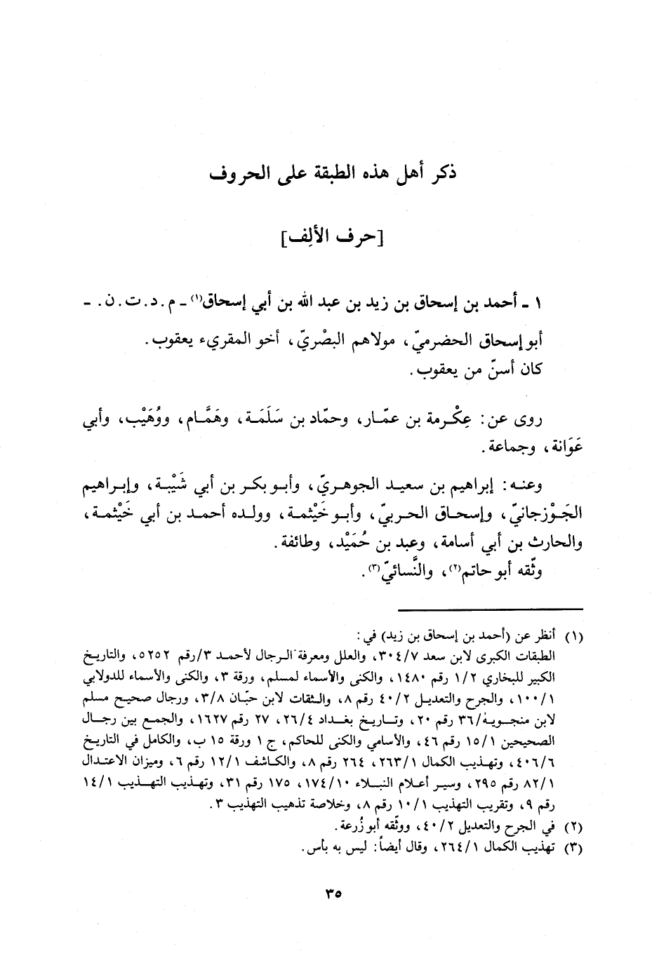 ذكر أَهْلِ هَذِهِ الطَّبَقَةِ عَلَى الْحُرُوفِ