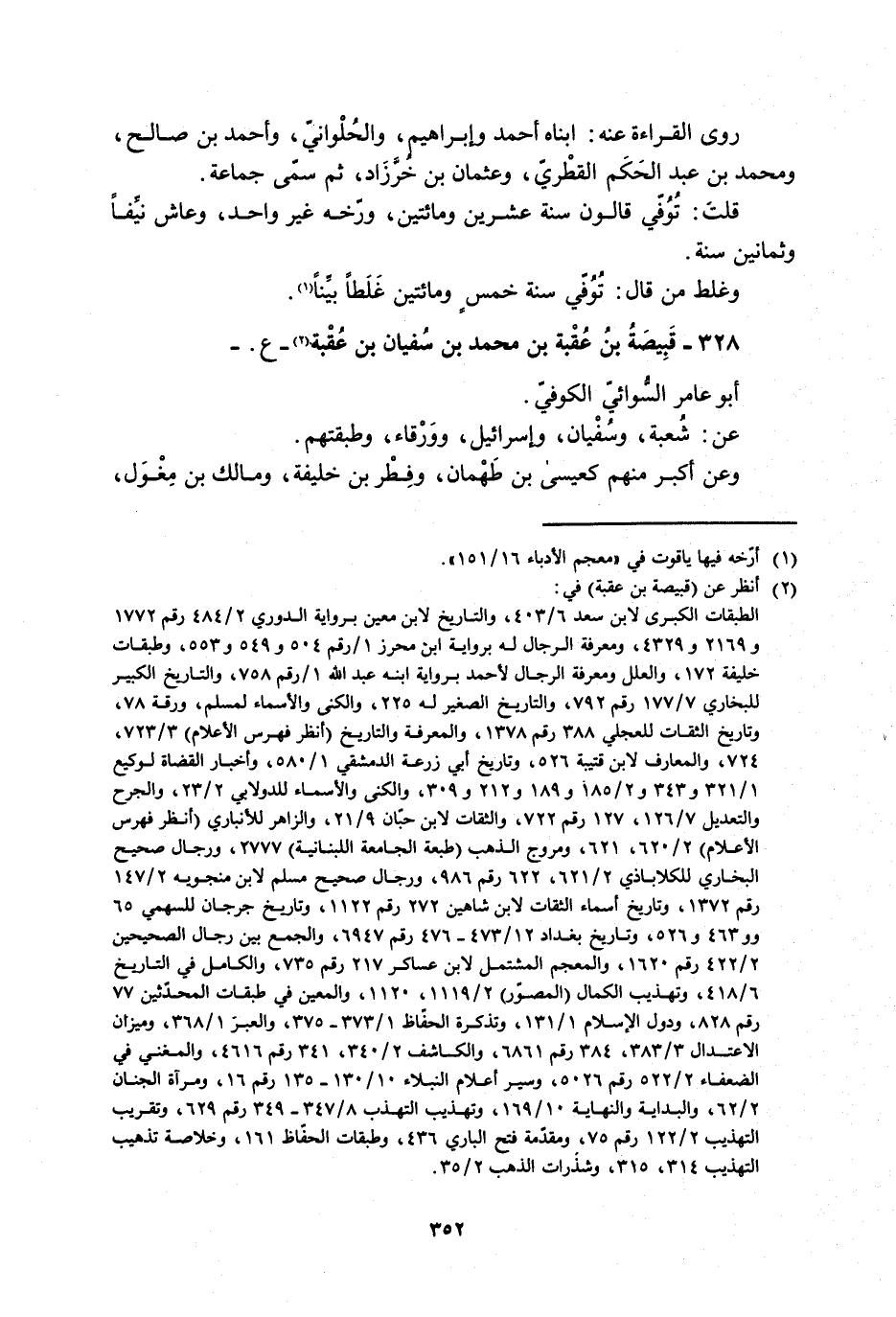 328- قَبِيصَةُ بنُ عُقْبة بن محمد بن سفيان بن عقبة [2]- ع. - أبو عامر السّوائيّ الكوفيّ.