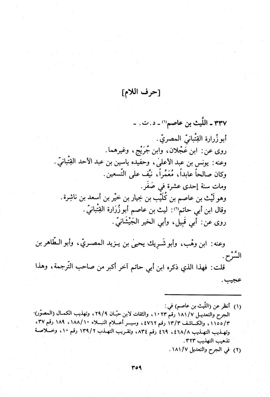 337- اللّيث بن عاصم [1]- د. ت. - أبو زرارة القتبانيّ المصريّ.