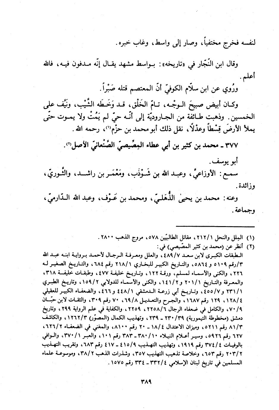377- محمد بن كثير بن أبي عطاء المِصَّيصيّ الصَّنْعانيّ الأصل [2] .
