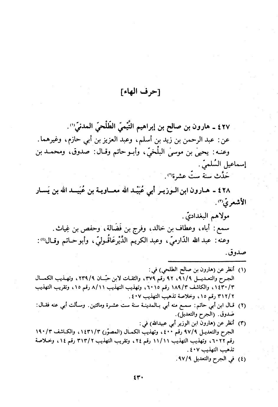 [1] انظر عن (هارون بن صالح الطلحي) في: