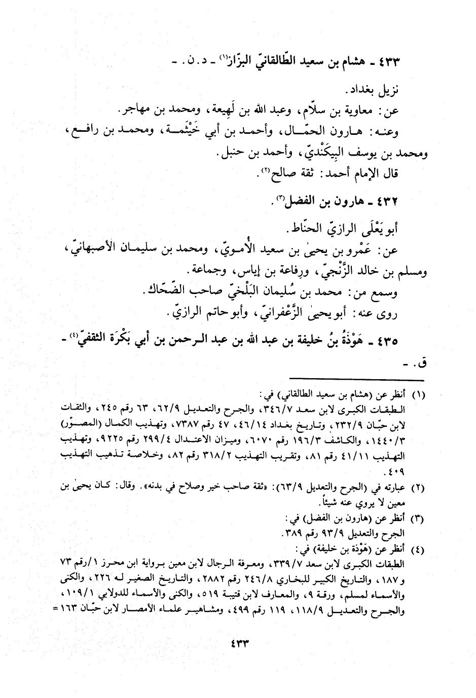 433- هشام بن سعيد الطّالقانيّ البزّاز [1]- د. ن. - نزيل بغداد.