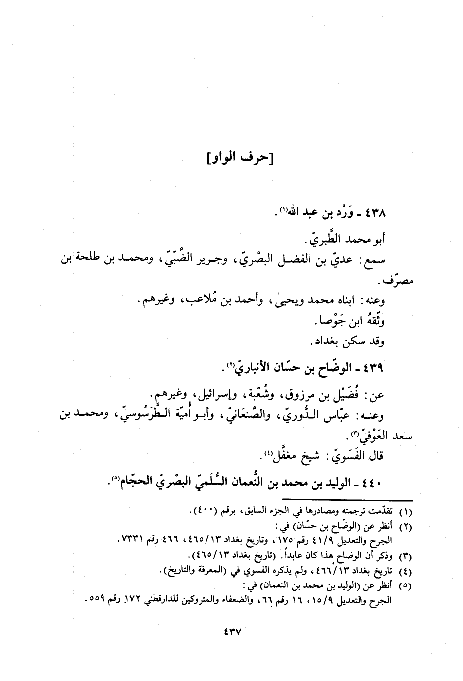 [4] تاريخ بغداد 13/ 466، ولم يذكره الفسوي في (المعرفة والتاريخ) .