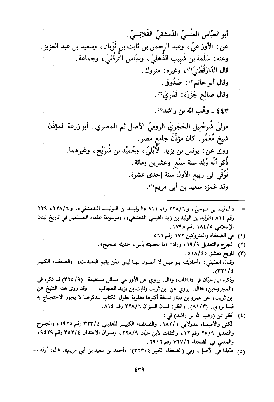 [ (-) ] «الوليد بن موسى، و 6/ 228 رقم 811 «الوليد بن الوليد الدمشقيّ» ، و 6/ 228، 229 رقم 814 «الوليد بن الوليد بن زيد القيسي الدمشقيّ» ، وموسوعة علماء المسلمين في تاريخ لبنان الإسلامي 5/ 184 رقم 1798.