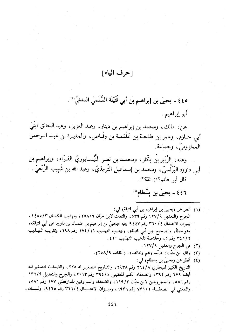 445- يحيى بْن إِبْرَاهِيم بْن أَبِي قُتَيْلَة السُّلَميّ المدنيّ [1] .