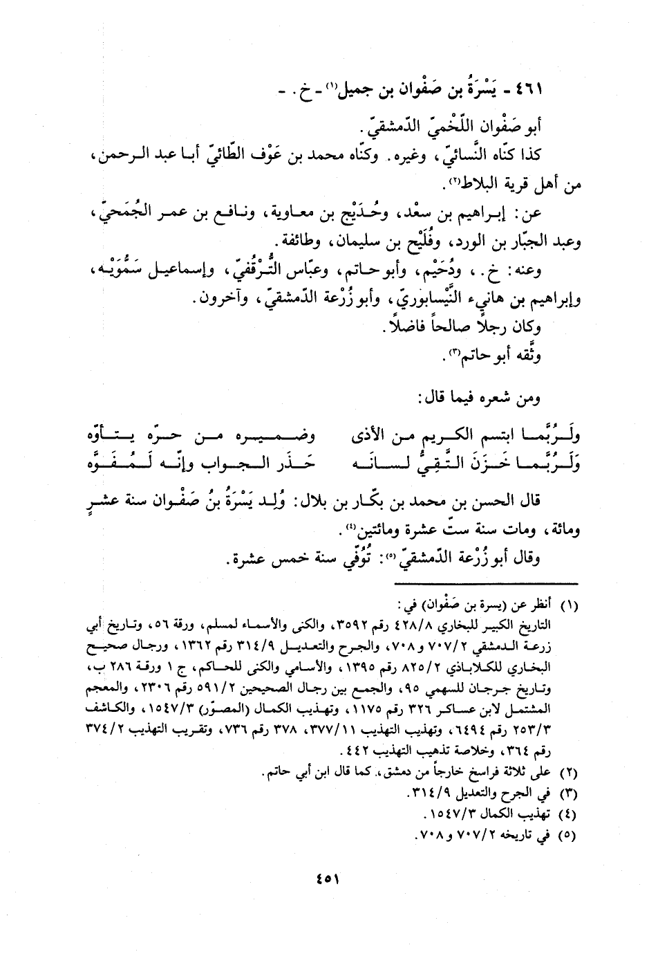 461- يسرة بن صفوان بن جميل [1]- خ. - أبو صفوان اللّخميّ الدّمشقيّ.