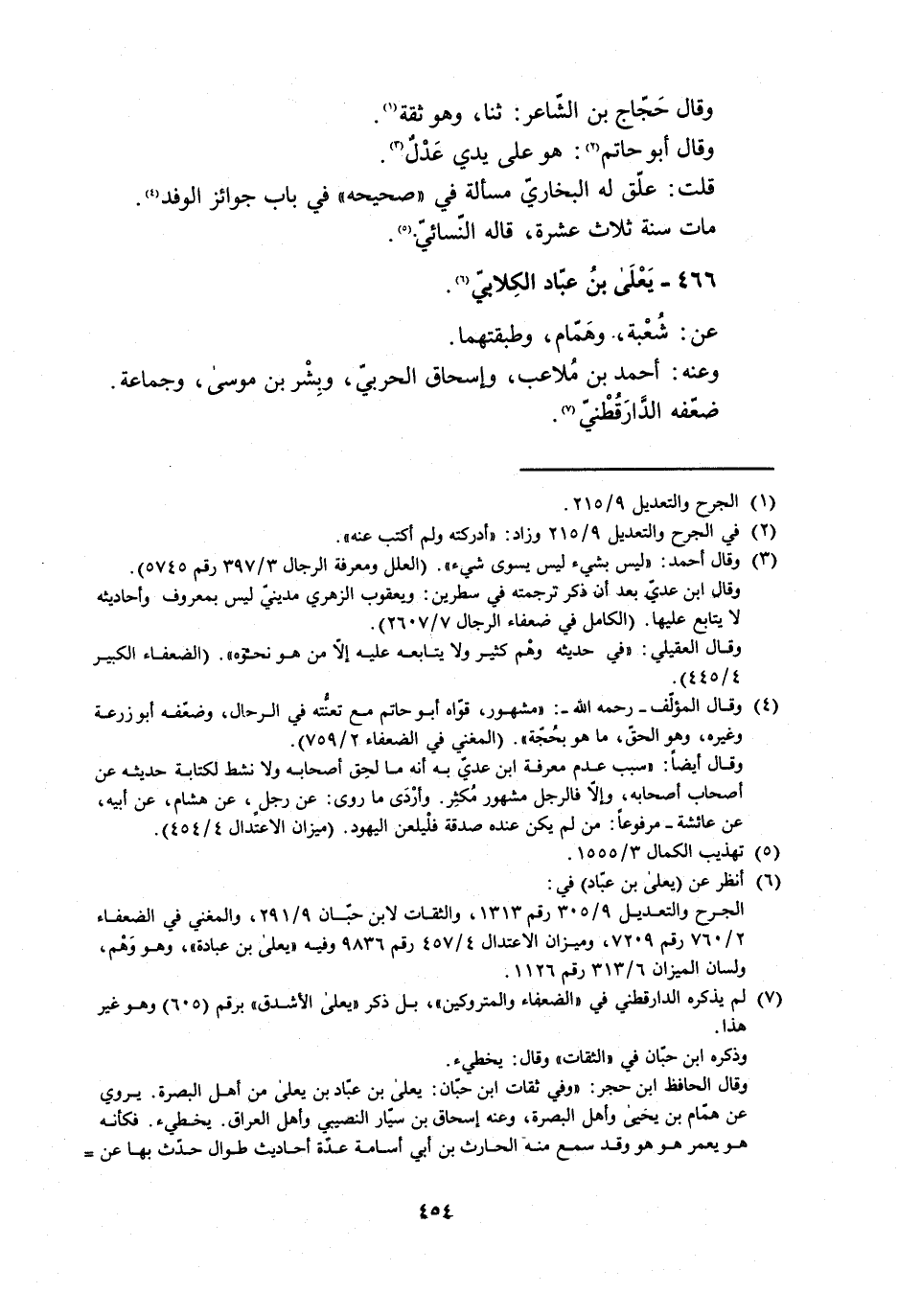 الجرح والتعديل 9/ 305 رقم 1313، والثقات لابن حبّان 9/ 291، والمغني في الضعفاء 2/ 760 رقم 7209، وميزان الاعتدال 4/ 457 رقم 9836 وفيه «يعلى بن عبادة» وهو وهم، ولسان الميزان 6/ 313 رقم 1126.