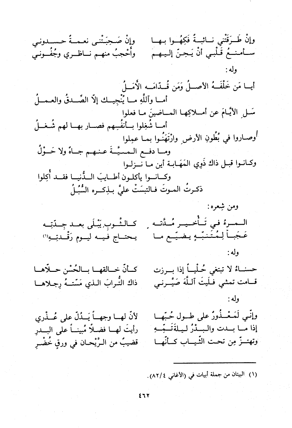 [1] البيتان من جملة أبيات في (الأغاني 4/ 82) .