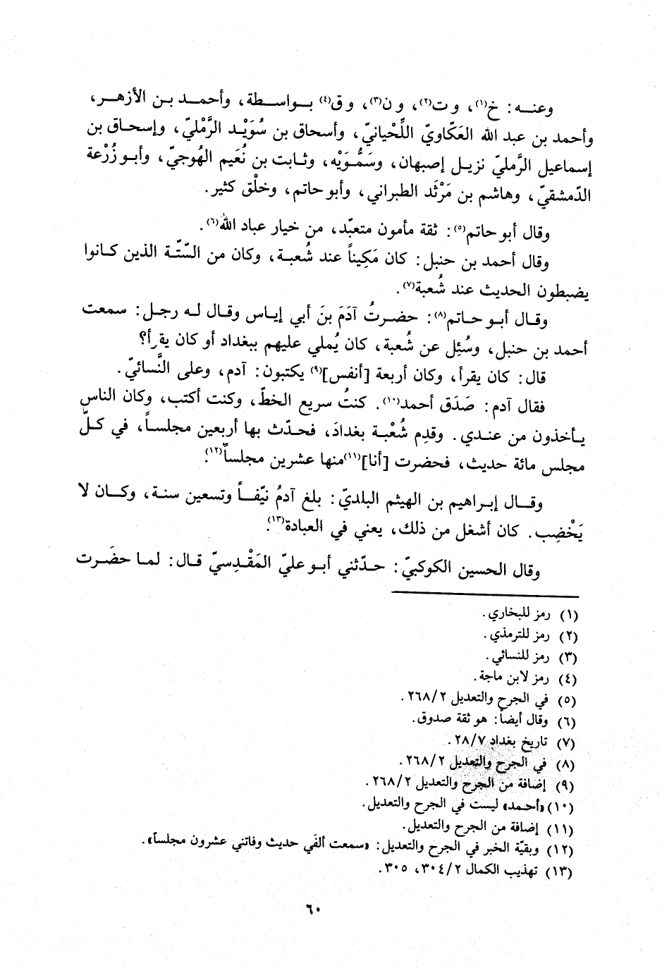 [12] وبقيّة الخبر في الجرح والتعديل: «سمعت ألفي حديث وفاتني عشرون مجلسا» .