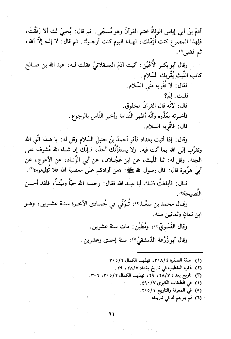[3] تاريخ بغداد 7/ 28، 29، تهذيب الكمال 2/ 305، 306.