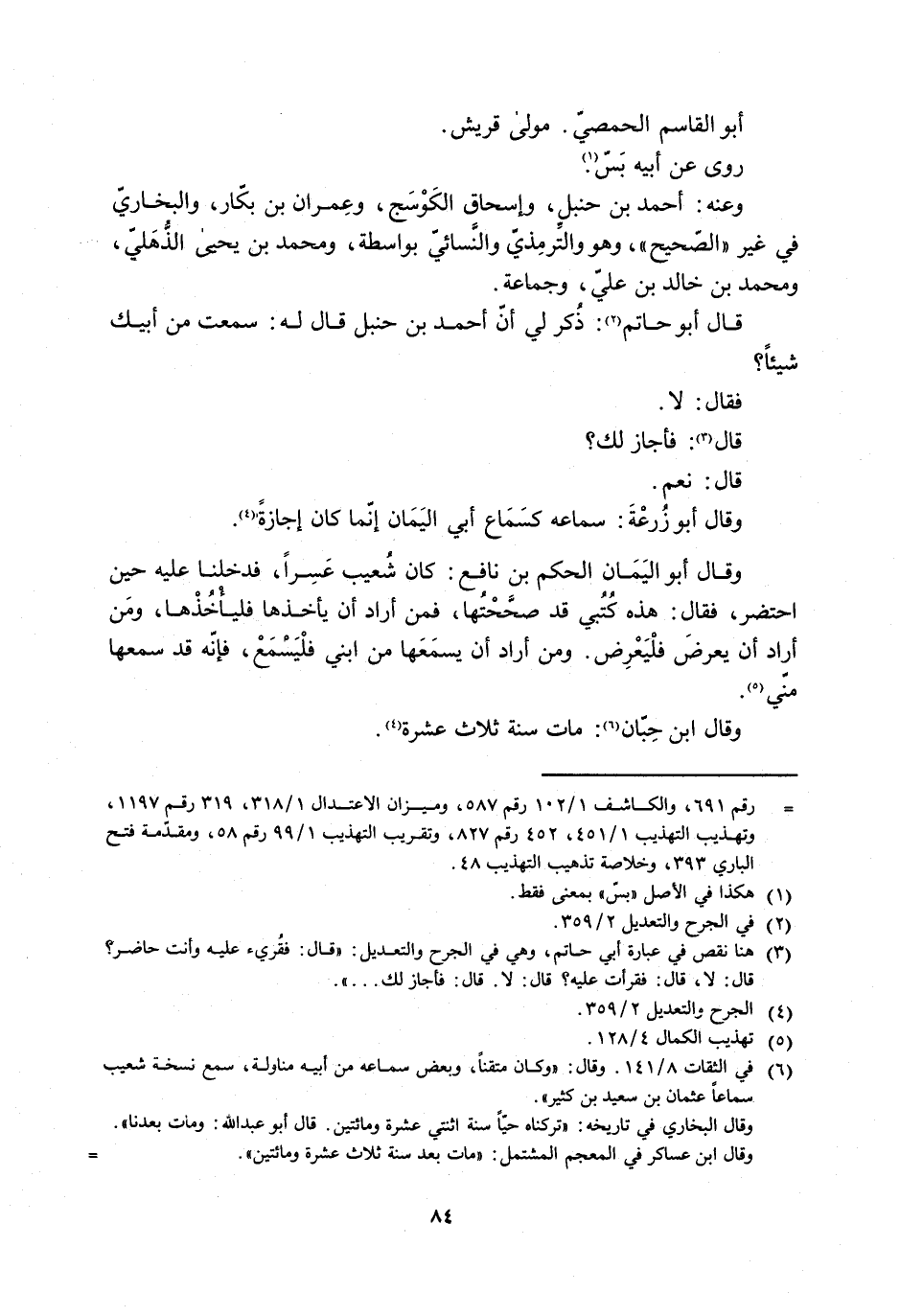 [3] هنا نقص في عبارة أبي حاتم، وهي في الجرح والتعديل: «قال: فقرئ عليه وأنت حاضر؟