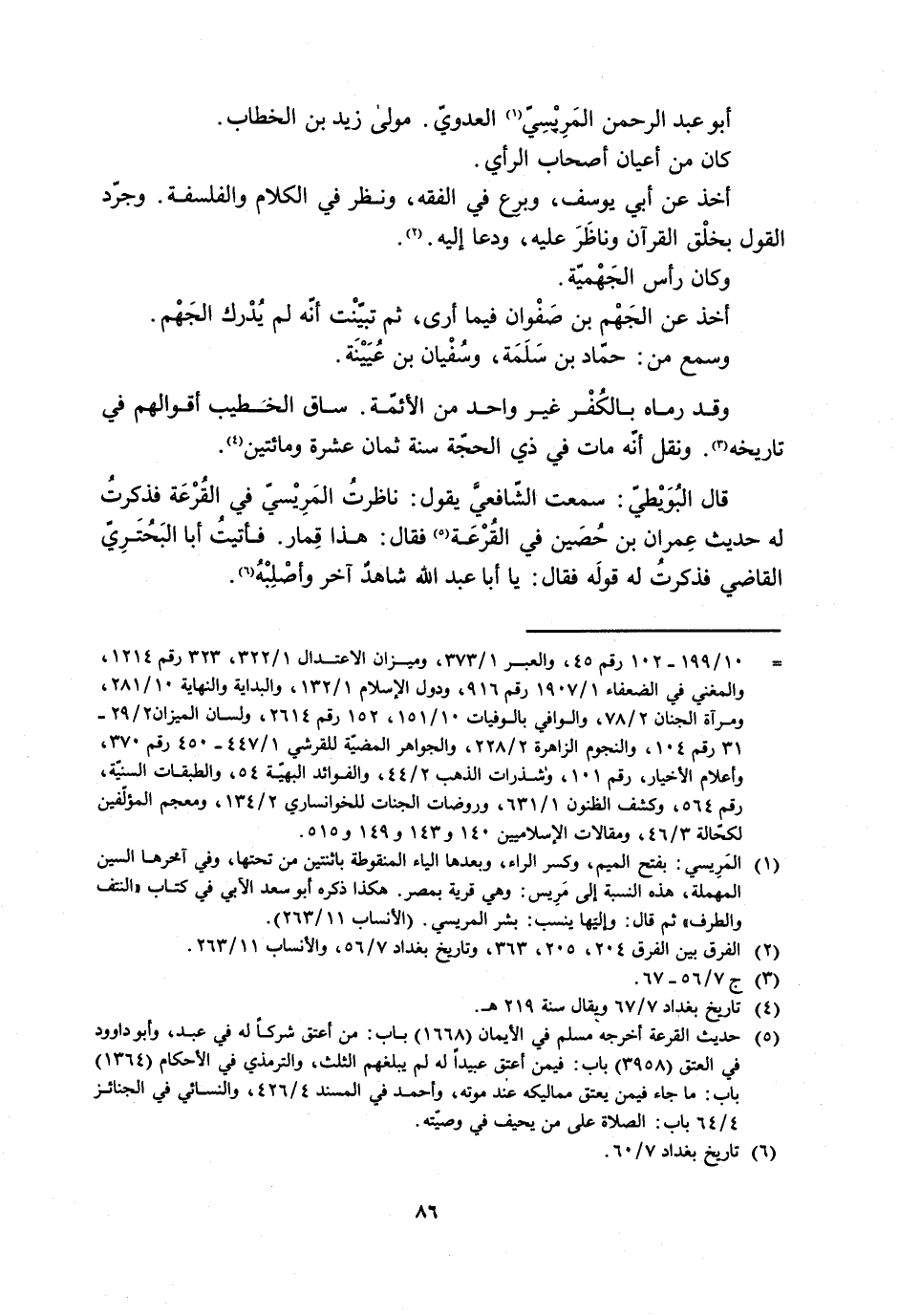 [2] الفرق بين الفرق 204، 205، 363، وتاريخ بغداد 7/ 56، والأنساب 11/ 263.