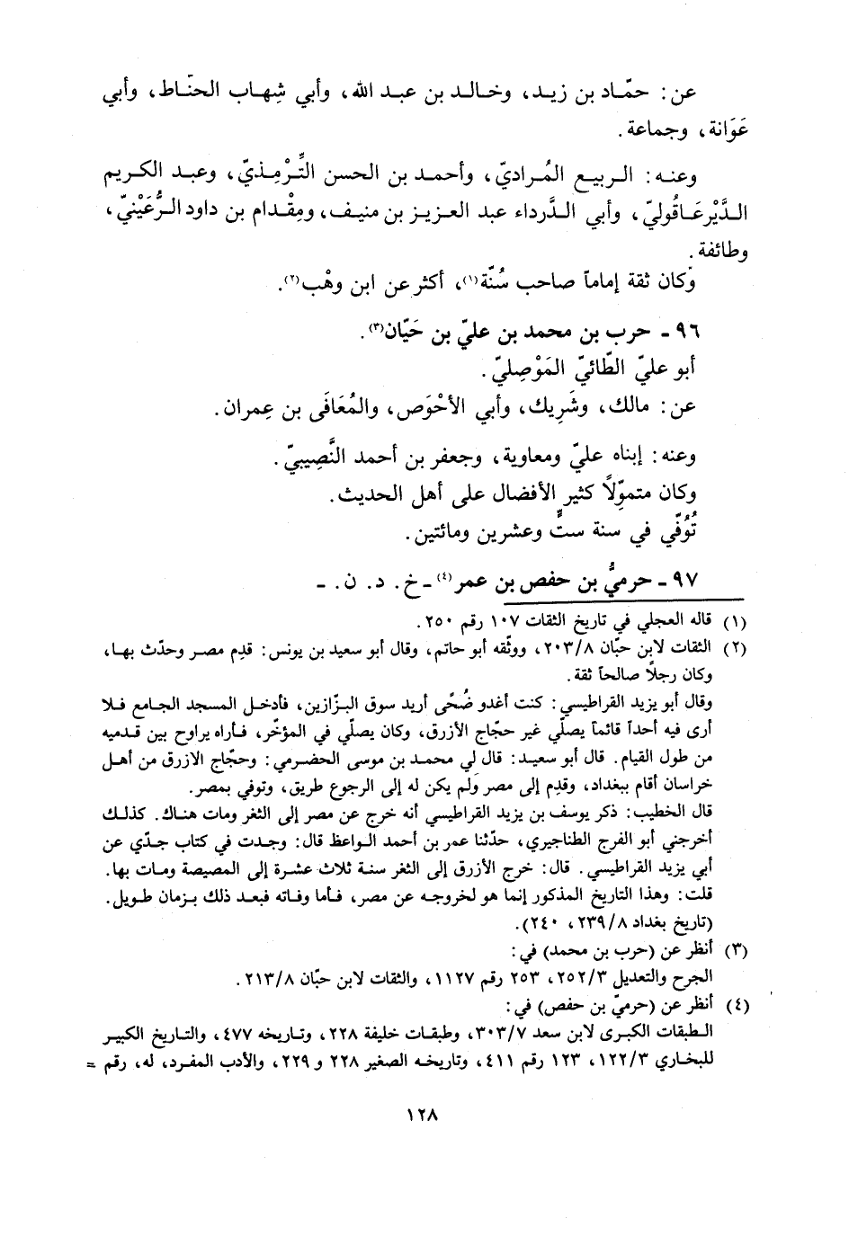 [2] الثقات لابن حبّان 8/ 203، ووثّقه أَبُو حَاتِمٍ، وَقَالَ أَبُو سَعِيدِ بْنُ يُونُسَ: قدم مصر وحدّث بها، وكان رجلا صالحا ثقة.