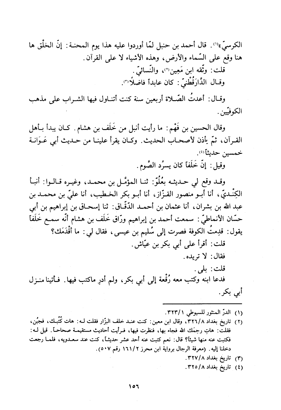 [2] تاريخ بغداد 8/ 326، وقال ابن معين: كنت عند خلف البزّار فقلت له: هات كتبك، فجبن، فقلت: هات رحمك الله فجاء بها، فنظرت فيها، فرأيت أحاديث مستقيمة صحاحا. قيل له: