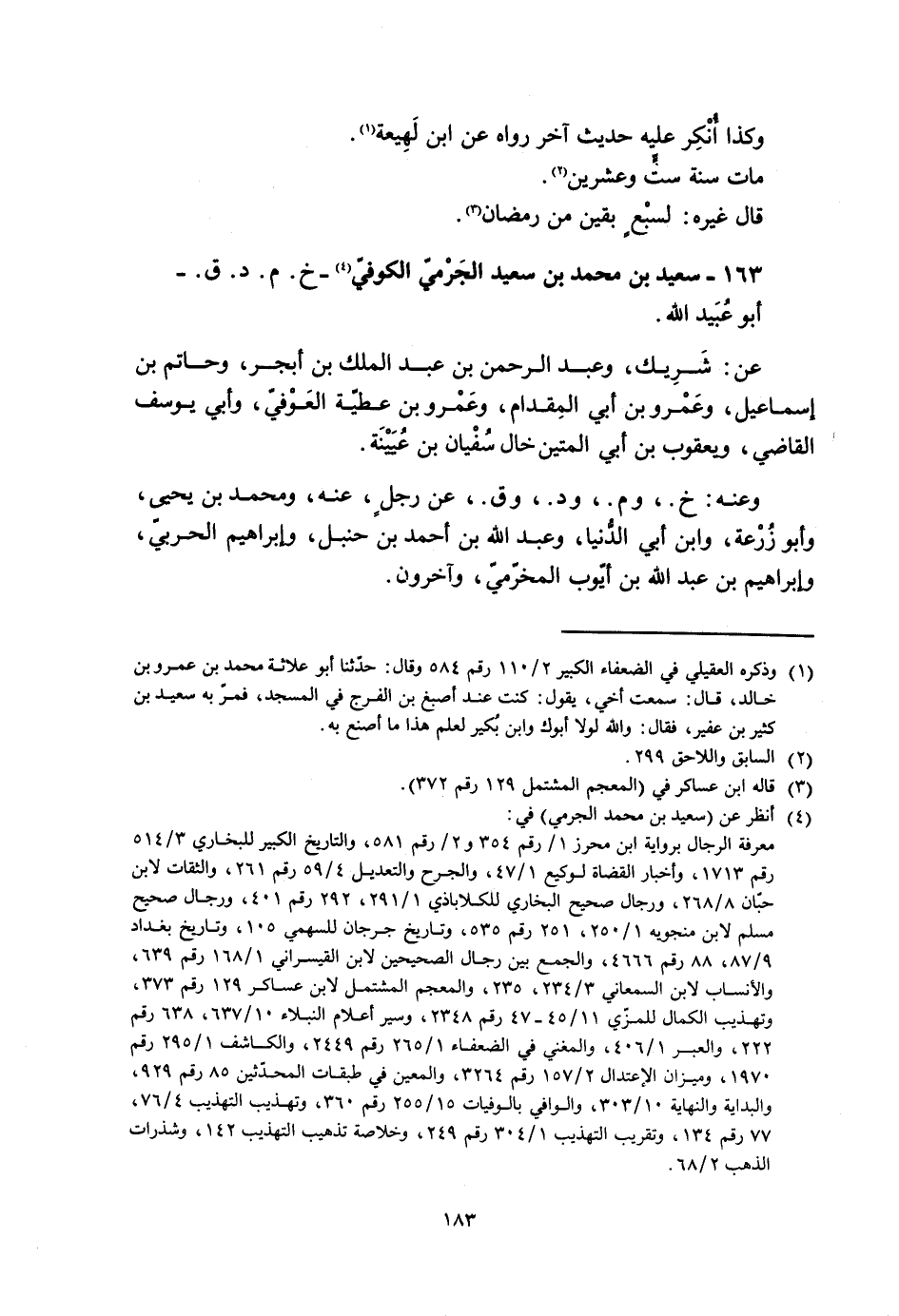 163- سعيد بن محمد بن سعيد الجرميّ الكوفيّ [4]- خ. م. د. ق. - أبو عبيد الله.