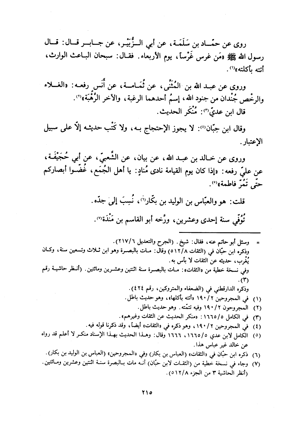 [6] ذكره ابن حبّان في «الثقات» (العباس بن بكار) وفي «المجروحين» (العباس بن الوليد بن بكار) .