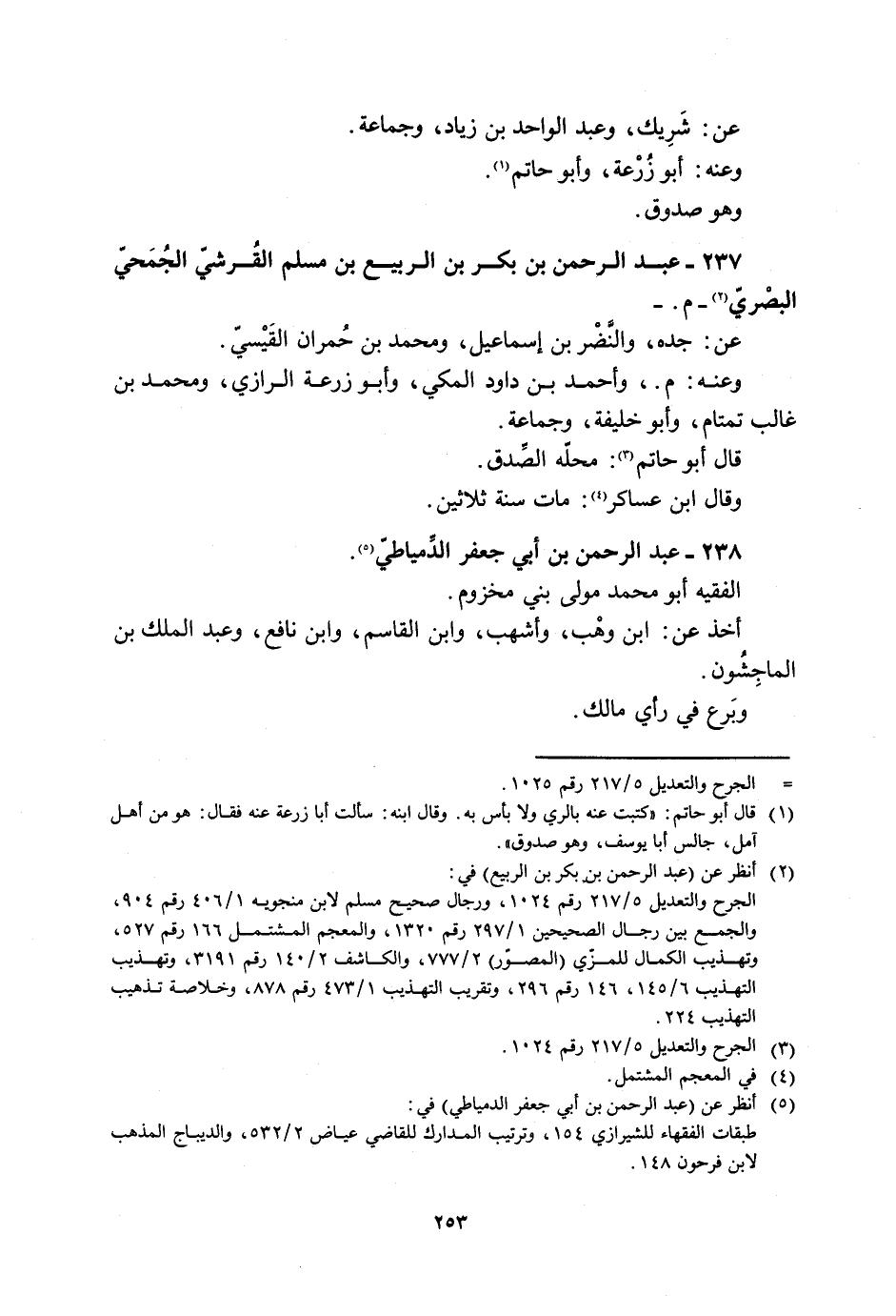 237- عبد الرحمن بن بكر بن الربيع بن مسلم القُرَشيّ الجمحي البصري [2]- م. - عن: جدّه، والنَّضْر بن إسماعيل، ومحمد بن حُمْران القَيْسيّ.