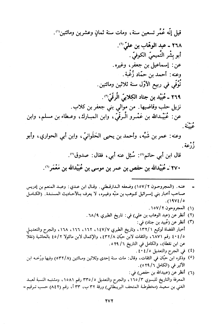 270- عُبَيْد الله بن حفص بْنُ عُمَرَ بْنِ مُوسَى بْنُ عُبَيْدِ اللَّهِ بن معمر [6] .
