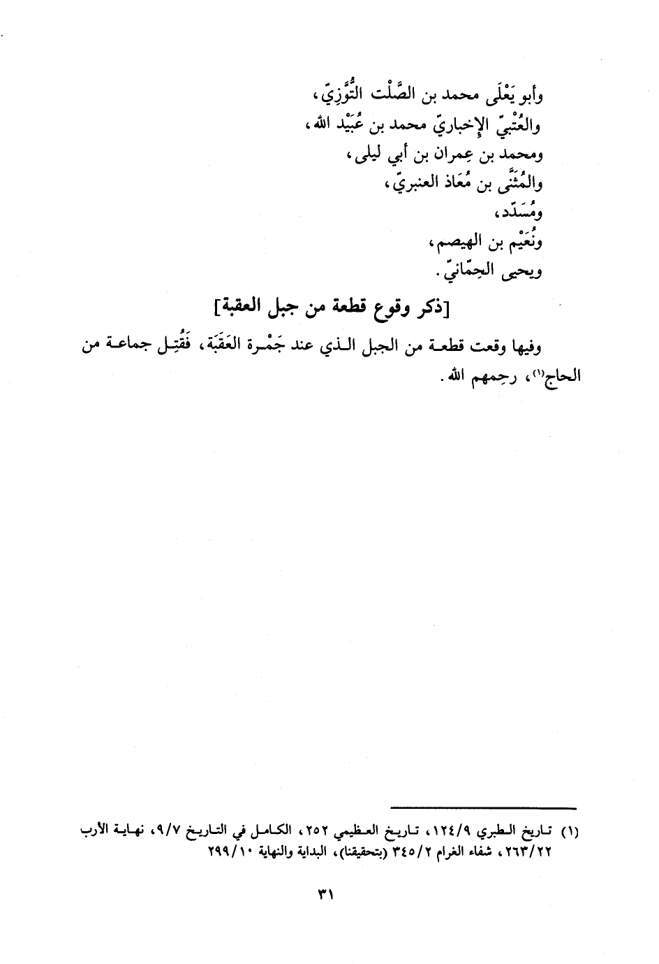 [1] تاريخ الطبري 9/ 124، تاريخ العظيمي 252، الكامل في التاريخ 7/ 9، نهاية الأرب، L 263 /22 شفاء الغرام 2/ 345 (بتحقيقنا) ، البداية والنهاية 10/ 299