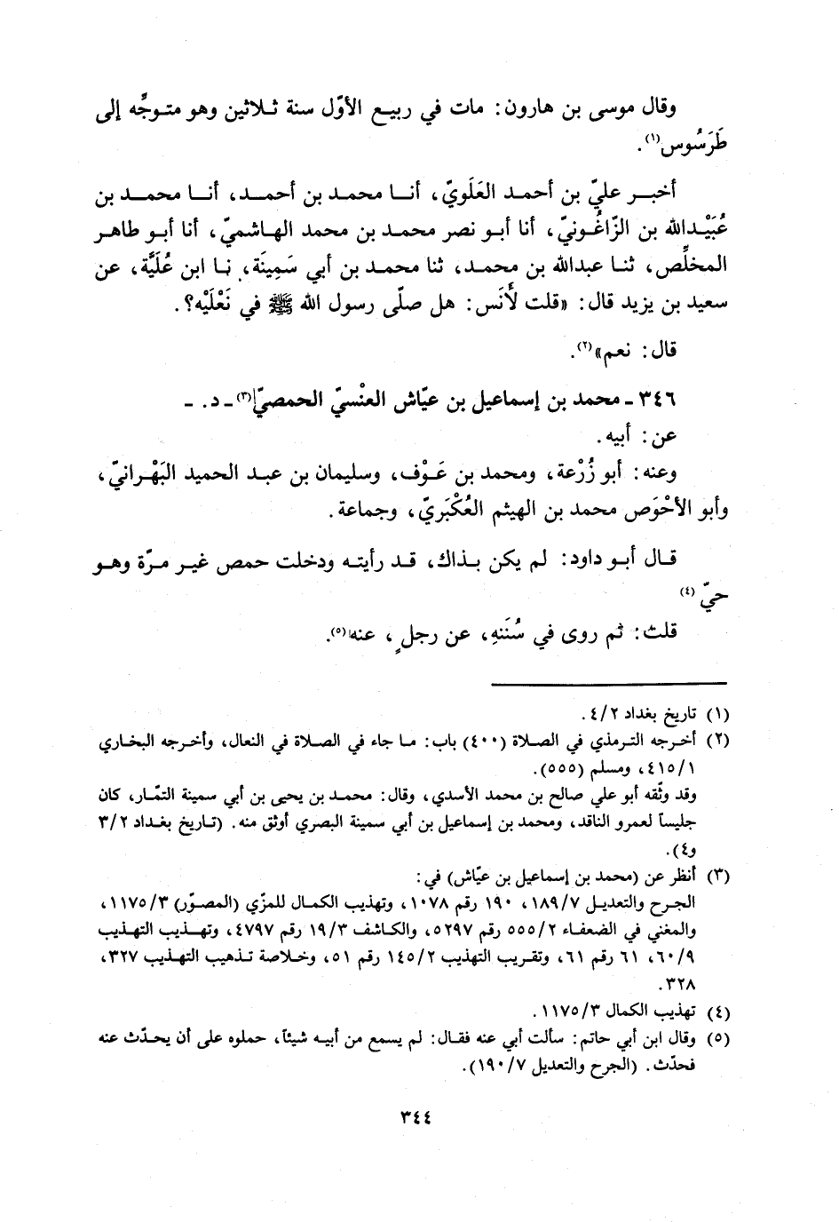 346- محمد بن إسماعيل بن عيّاش العنْسيّ الحمصيّ [3]- د. - عن: أبيه.