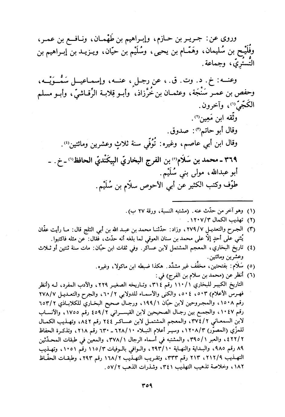 369- محمد بن سلّام [5] بن الفرج البخاريّ البيكنديّ الحافظ [6]- خ. - أبو عبد الله، مولى بني سُلَيم.