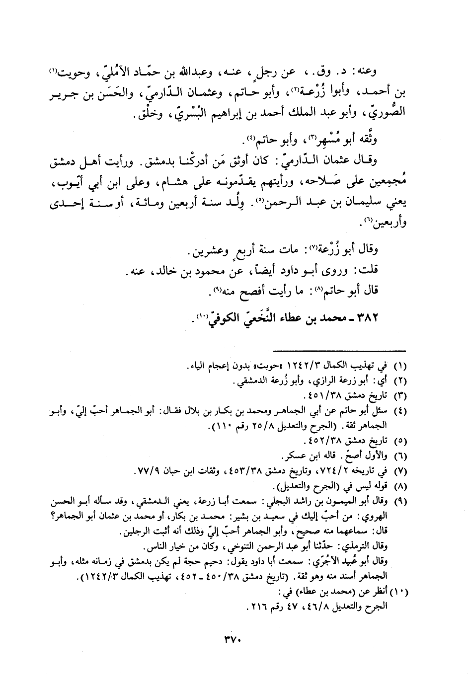 [4] سئل أبو حاتم عن أبي الجماهر ومحمد بن بكار بن بلال فقال: أبو الجماهر أحبّ إليّ، وأبو الجماهر ثقة. (الجرح والتعديل 8/ 25 رقم 110) .