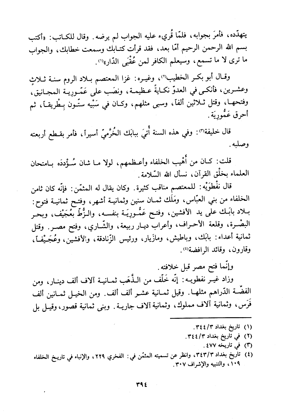 [4] تاريخ بغداد 3/ 343، وانظر عن تسميته المثمّن في: الفخري 229، والإنباء في تاريخ الخلفاء 109، والتنبيه والإشراف 307.